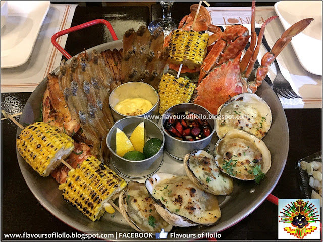 This plate has no official name yet when had them and since it was presented in a festive manner it was christened Grilled Seafood Fiesta. Served with grilled corn on the side and a variety of dips and sauces, it had the bounty of the sea - crabs, shrimps, shellfish, squid and fish. I like how it was accented with the palid-palid, those dried fish "sticking to each other" giving it a crispy and salty side.